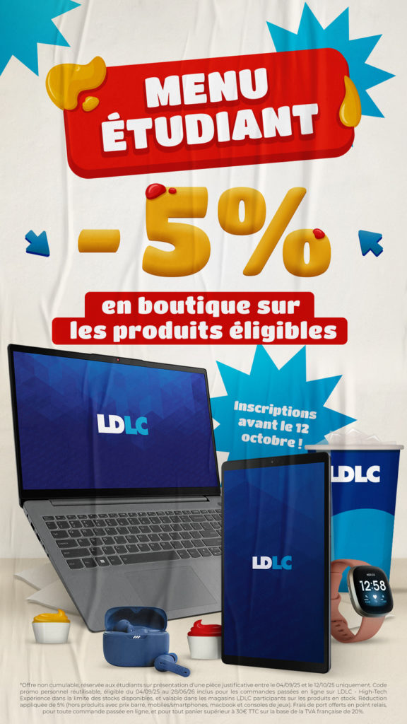 Ătudier, câest bien. Avec ça, câest mieux : -5%* en boutique sur les produits Ă©ligibles dans votre boutique LDLC, TOUTE L’ANNĂE !