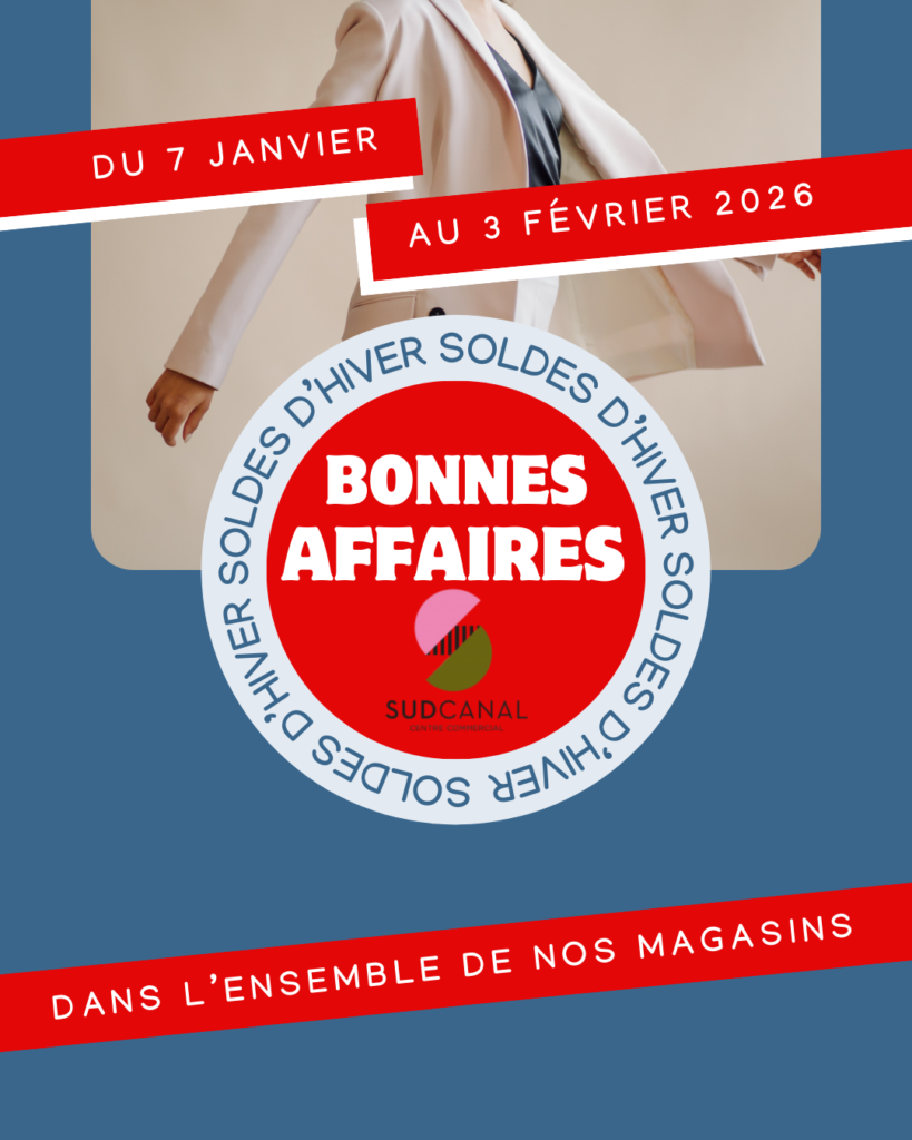 Les soldes d’hiver commencent aujourd’hui : mercredi 7 janvier ! Venez faire de très bonnes affaires dès 10h au centre commercial Sud Canal 🤍Nous serons ouverts ce dimanche 11 janvier de 10h à 19h pour l’occasion 🤩✨🛍️